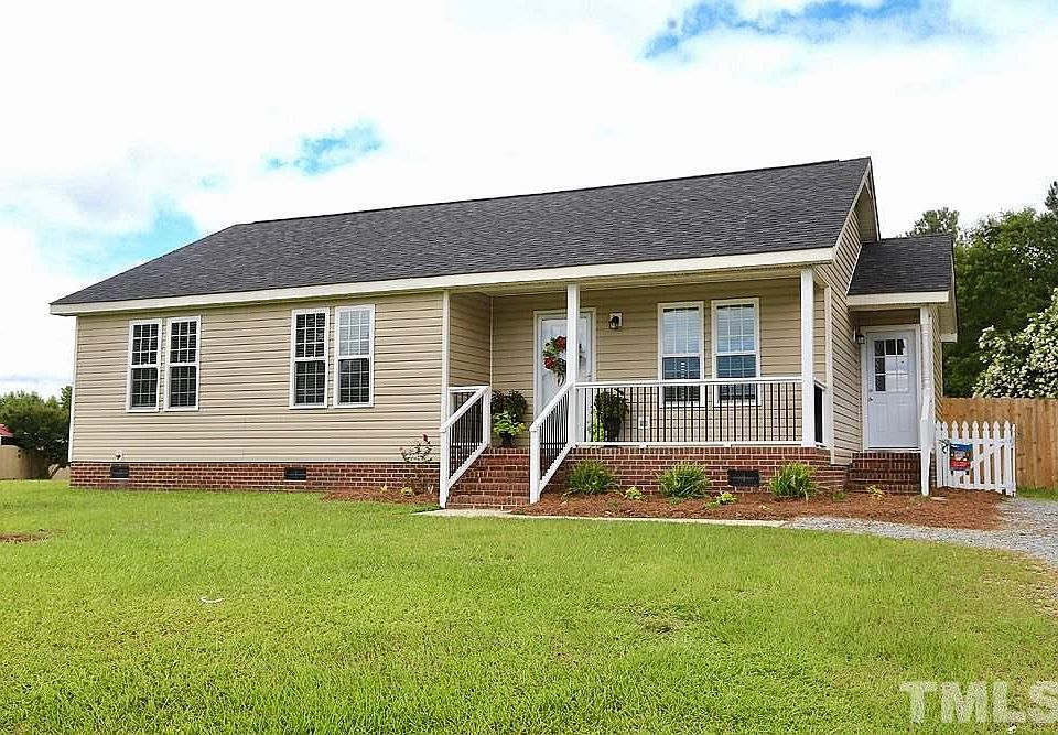 Comfortable living starts here w/this beautifully renovated solidly built ranch set on over a third of an acre featuring a new deck, large fenced yard, rocking-chair front porch, new SS appliances, solid surface counters, new light fixtures, cathedral ceiling, new paint, fresh graveled driveway & more. Great location convenient to Angier's parks & recreational, restaurants, Raleigh, Fuquay, Fayetteville & more.