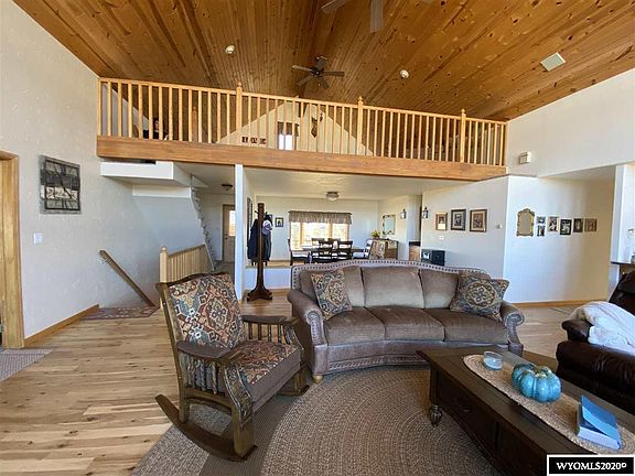 Majestic view of the Bighorn Mountains!! This beautiful home has been updated and finished throughout. New furnace, with on demand hot water heater. Five exterior doors installed 2022. Sewing room and office on lower level. Wrap-around porch on three sides. Large open living room and dining area that has a small wet bar and hardwood floors. Large rock fireplace and vaulted tongue and groove wood ceilings. Massive windows to the west so you can enjoy every minute of the mountain view. Kitchen has new tile flooring and granite counter tops with gorgeous wood cabinets. New 640 sq. ft. shed plus a chicken coop. Mature plantings. Multiple pastures for horses. The views from nearly every room in this home are breath taking!