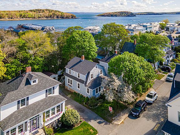 Discover this charming 3 bedroom, 2.5 bath Dutch Colonial nestled on a picturesque side street in downtown Bar Harbor. Featuring rich, warm wood floors and original woodwork throughout, this home blends timeless character with cozy comforts. The inviting living area has large windows, french doors, and a propane woodstove—perfect for cool coastal evenings. Seasonal ocean views from 2nd floor and back deck. New windows, roof and many other updates within the last 3 years. An ideal blend of classic design and central location, this property is a true Bar Harbor gem.