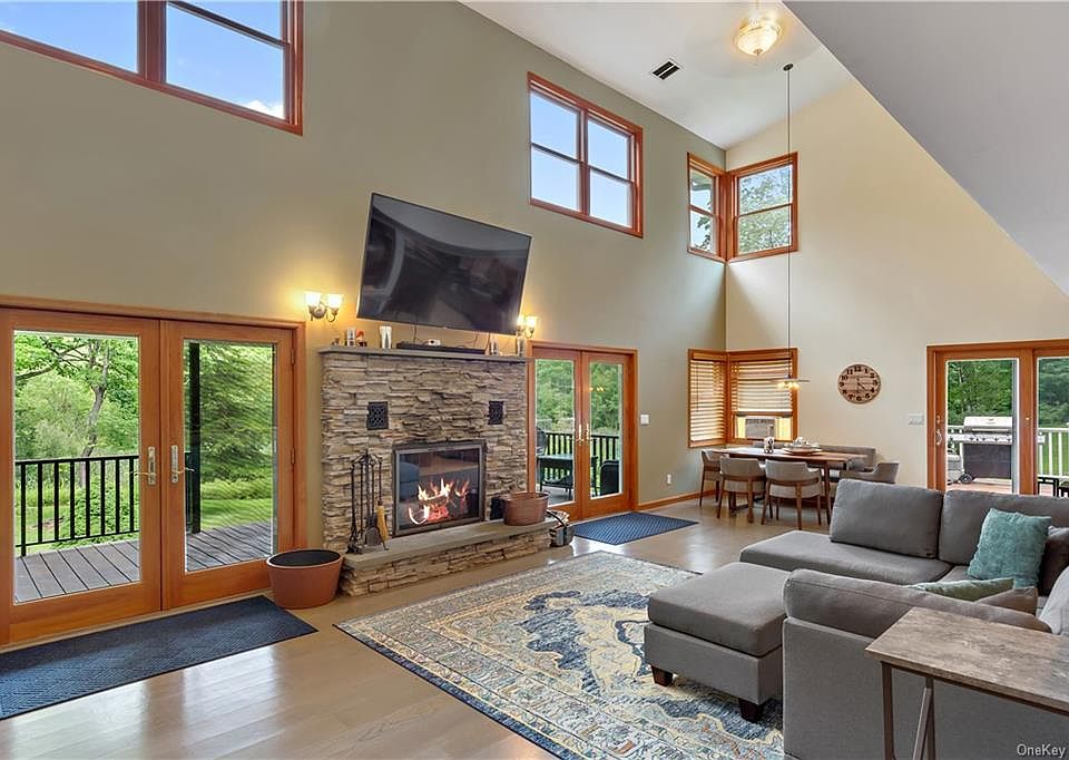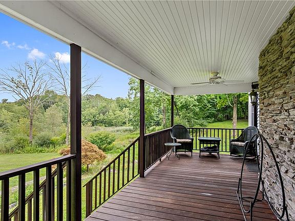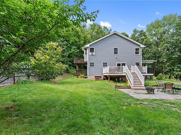 The Perfect Home for those that want privacy and accessibility. Sitting on over 5 acres, this beautiful, spacious, 3 bed/4 full-bath features full basement w/ additional rooms+closets, family room, full bath. Enjoy a private road that welcomes you w/ stone wall landscaping and french doors. Entering the home, you will notice plenty of nature light from the large windows, 24' high ceilings, fireplace and open concept kitchen, dining and living areas. The kitchen features granite countertops, walk-in pantry, double electric oven, large island with a Jenn-Air gas grill. Enjoy a built-in workspace in the living room as well as a large deck that sits next to the dining room/kitchen. Master Bedroom suite has linen closet, 2 walk-in closets and private-access deck. Other notable features include an additional 2nd floor deck from bedroom, attached 2-car garage, 2nd floor laundry room and outdoor private path that leads to a spring-fed pond. Close proximity to I684, train and schools.