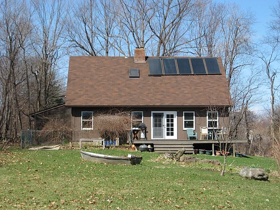 Live Green in Greene County!!! Energy efficient post and beam cape. It has regular baseboard heat but you'll never need it! Very low total cost of ownership with passive solar heat and solar hot water, plus 2 woodstoves. Average annual fuel cost over 6 years is only $350.00 per year without having to burn wood! Open floor plan plus huge deck and screened porch. The kitchen has new appliances and a huge enamel coated cast iron country sink. Cathedral ceilings and beautiful new bamboo floors in bedrooms. Walk-out lower level with finished bedroom and walk-in closet. Peaceful, private setting, 15.8 acres( on 2 deeds) mostly wooded with established hiking trails and great for hunting or outdoor motorsports. Open 2.5 acres in back. Beautiful perennial flower gardens, raised veggie beds and fruit trees. Easy Albany commute. The Zestimate® does not include the 9.7 acre lot on the second deed that is included with this sale. That lot has a Zestimate® of $26k. The Facebook page has a lot more pictures and more information about the house. https://www.facebook.com/phifteen.fernwoodlane