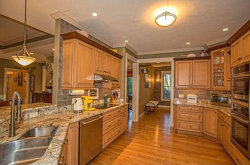 Surround yourself in luxury ! Resort-like living in this exclusive, executive ranch that has all the bells & whistles. This home is set back and nestled on nearly an acre of perfectly manicured, professionally landscaped, park-like, lit grounds at the end of a culdesac. No money was spared here with all the extra's which include an opulent master suite with elegant spa like bath which has steam/rain forest shower and large soaking/jetted tub and radiant heated travertine floor. Underground sprinkler system, central vac, Wolfe cook top, Thermador fridge, custom crown moldings, trey ceilings, gas stone fireplace, whole house generator, air purification system and instant heat tankless hot water. Easy one level living in this open floor plan which has french doors to trex deck overlooking a totally private yard abutting woods, Come be impressed with the country club feel in this sprawling ranch.