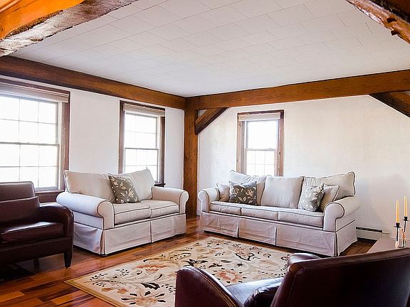 You'll love how much charm this house has! From the front porch to the fireplace and wood beams. Not only enjoy the charm but that the house is move-in ready and has the convenience of laundry on the main level. Two bedrooms on the second floor and possible den/ playroom, whatever you may need, on the third floor. Large deck leads to the useable, level backyard with a large shed for storage. Conveniently located to the highways, dining, outdoor activities and shopping. This is a home worth visiting!
