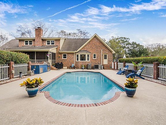 Your fully brick dream home awaits in Shadowmoss located on the 18th tee box with a 15,000 gallon sport pool with built-in outdoor kitchen, first floor owner's suite with deluxe renovated owner's bath - double sinks, separate shower, jetted tub, water closet, linen closet - enormous rooms throughout all on .61 acre! Crafted by the legendary builder, Max Crosby, this home has never been available to the public, and you will be only the third owner! The expansive front yard is 205' across making a stately entrance. The living room/office is massive and leads to the formal dining room which is also adjacent to the stunning kitchen with a farmhouse sink overlooking the incredible backyard and pool. This home has everything you could want: hardwood flooring throughout the first floorless wet areas, enormous first floor owners' suite with his and her closets, one of which is walk-in, renovated kitchen with crisp white cabinets including soft close doors and drawers, breakfast area with bay window also overlooking the pool, separate renovated powder room, utility room with space for an extra refrigerator plus ample storage with a door leading to the pool, living room, dining room, family room with a brick hearth and wood burning fireplace, huge screen porch with vaulted ceilings which make way for stunning views of the pool and golf course, separate bonus room/5th bedroom with easy access to two separate storage areas, three additional bedrooms are located upstairs, one of which could be used as a second owner's suite and so much more. The two-car garage is side load and also has additional storage space. This home is grandfathered in so you don't have to pay HOA dues and won't be confined to those rules and regulations. Shadowmoss Country Club is a stone's throw away, right across the golf course, and includes a restaurant, bar, fitness center, pool and more! If you're a golf lover like so many, you'll find affordable options to fulfill your hobby! Commercial space at the front of the community is coming soon, and you're a quick golf cart ride away from the Harris Teeter and Lowe's shopping centers.