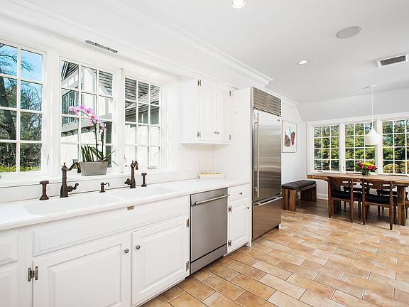 Picturesque English Tudor cottage on park-like grounds, beautifully appointed with custom millwork, fine finishes and wide-board hardwood floors. Double height foyer opens to sun-filled living room and family room appointed with beamed and coffered ceilings, fireplaces and French doors to inviting wraparound stone terrace. Gourmet kitchen, charming master suite and office above two-car garage. Close to North St school and downtown Greenwich.