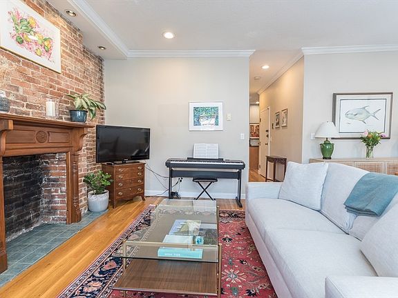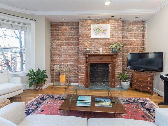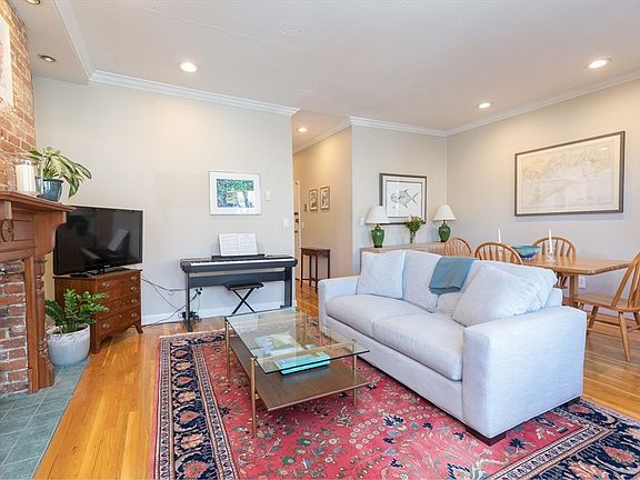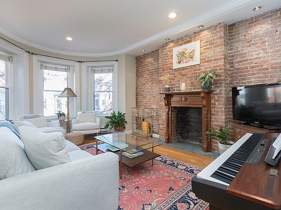 St.Botolph neighborhood 2 bedroom, 1 bath condo w/ 1 deeded parking space & common roof deck. This charming 2 bedroom on a quiet dead end street is just around the corner from the Prudential Center, Southwest Corridor and Back Bay Station -- a prime location for dining, shopping and conveniences of the Back Bay/South End. The sunny bow front living room has an original decorative fireplace & exposed brick with a dining area on one side. Hardwood floors (except primary bedroom), recessed lighting and tall ceilings throughout. The kitchen has granite counters & stainless steel appliances with room for a breakfast nook. The king size primary bedroom features ample closet storage while the second bedroom has a dedicated closet and luggage storage. The modern bathroom features a marble top vanity & glass-paned shower. The professionally managed association is comprised of 45 units across several buildings. Common laundry, bike storage & trash is in the adjacent building.