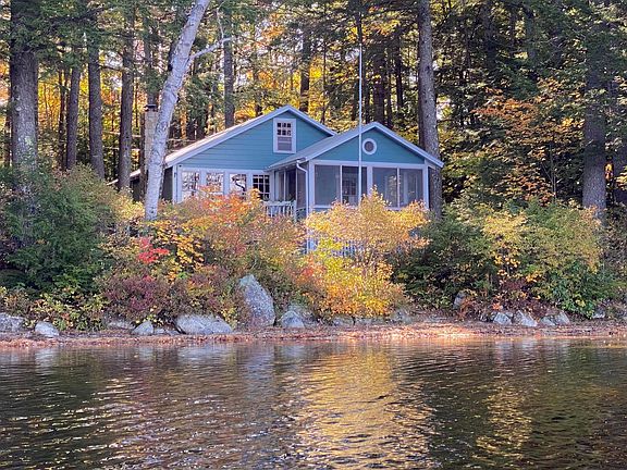 Dreaming of that waterfront Maine cabin nestled among the trees in a private cove. Classic 3 season Maine camp in a tranquil setting. 200' private frontage on desirable Stearns Pond, sandy beach and iconic boathouse with attached deck, which is perfect for cocktails.