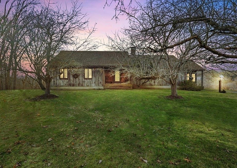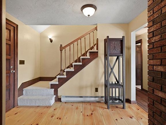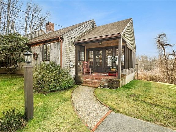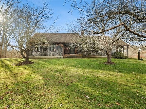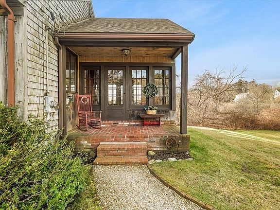 The best feature of this one level home is the location - country living on 2.2 acres of privacy, nature and the Town River in your back yard, enjoyable for canoeing and fishing. The large brick and wood screened porch [with glass inserts] has the best breeze, or two decks to enjoy the sunset. There is a large living room with stone fireplace and bookcase opening to a separate dining room. The kitchen is spacious with a separate laundry room. A barnboard den has a full wall brick fireplace and stone hearth with adjacent woodstove. A full hallway bath leads to three spacious bedrooms all with large, shelved closets. The main bedroom also has a full bath. There are great expansion possibilities which include a walk up full attic [loads of storage] and a full, dry walkout basement.
