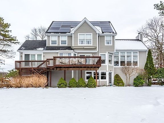 Highest & Best Monday by 5:00pm. Amazing views of the Cape Cod Canal will take your breath away from this one-owner custom-designed Contemporary in a great neighborhood. The 3000+ sq. ft. of living space is designed for entertaining w/step-down living room w/cathedral ceiling, fireplace, and separate wetbar area and a family room w/cathedral ceiling, columns and French doors to balcony and deck w/elec. awning overlooking fenced yard. Gourmet kitchen w/granite and huge island w/sink. Huge walk-in closet in master bed w/whirlpool and double sinks in master bath. Interior features gleaming hardwood floors and tiled baths, central air, first floor laundry room. One year old arch. roof, automatic generator, irrigation system, and leased solar panels for electric efficiency. Full walkout basement for future expansion and att. garage. Walk, bike, hike, fish or picnic along the canal or enjoy nearby beaches. First showings by appointment only Sat. and Sun., Jan. 9 and 10, from 11:00 to 12:30.