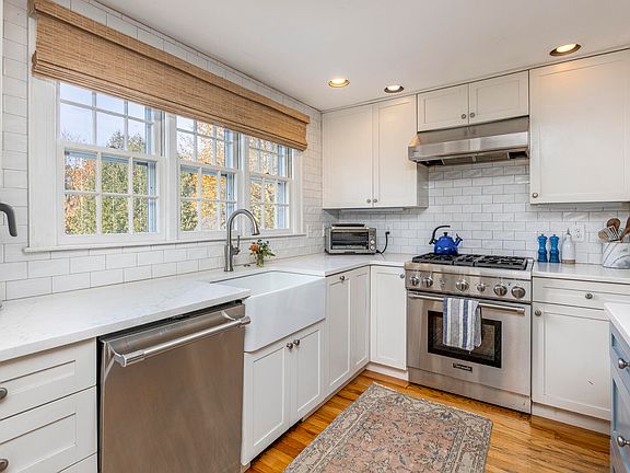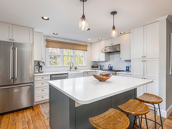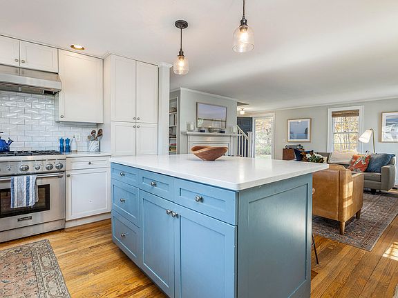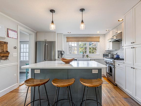 Timeless Cape Cod style home in the center of Cape Elizabeth! Inside you are welcomed by a newly renovated kitchen with airy gray cabinetry, a farmhouse sink, Thermador appliances, quartz countertops and a central island made for gathering. Hardwood floors seamlessly connect the open kitchen, dining and living room. The dining area features a builtin china cabinet and elegant chair rail while the living room with wood burning fireplace creates a cozy atmosphere. The first floor family room offers plenty of natural light with cathedral ceilings, heat pump, built-ins and glass doors to the private backyard. The first floor is completed by a full bath, a bedroom and a versatile office space that could be used as a 4th bedroom. The second level features two additional bedrooms with large closets, laundry and full bath with custom tile shower. The bonus room above the garage is ideal for a home office or additional family room. Enjoy beautiful sunsets from the backyard. The large deck, patio and flat yard offers plenty of space to entertain or take a quiet moment in the sun. The oversized detached garage and shed make storage easy. New Hardie board siding, insulation and roof all completed in 2022. This home perfectly blends comfort and style in this convenient Cape Elizabeth location!