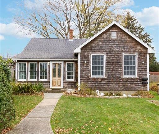 Adorable village cottage located near the library, playground, schools, and all the village amenities. The property is located in a commercial limited zoning district and offers many expansion possibilities such as a duplex, mixed use, etc. The current cottage has 2 bedrooms, 1 bath, a cherry kitchen with granite counters and s/s appliances. Lovely wood floors, enclosed front porch. The yard accented by a stone wall has mature fruit trees, trellis arbor with wisteria, vegetable garden, and large shed. Enjoy as a weekend getaway, or comfortable and cozy year round cottage. Jamestown is minutes from Newport, and an easy commute to cities like Providence or Boston.