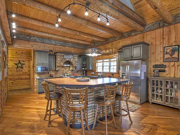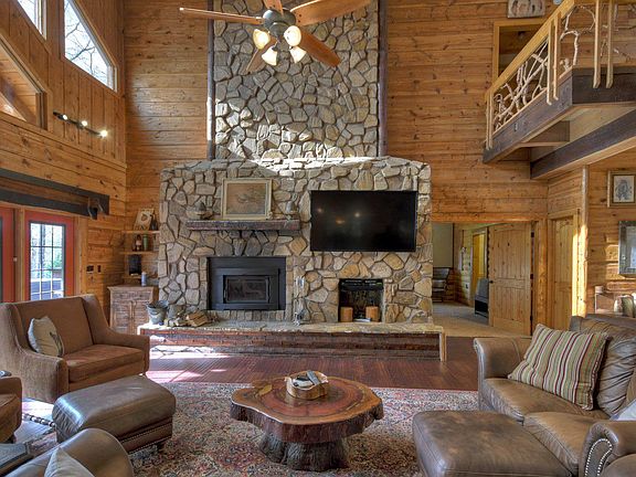 Quality Craftsman Charm meets Traditional Elegance with Rustic Flair...this 4 bedroom/3.5 bath home + large loft is nestled on gentle oversize wooded tract in quaint creek community with ultimate privacy... interior boasts open & well appointed layout featuring massive woodburning fireplaces in large family room, chefs kitchen with upscale appliances & painted cabinetry, large pantry & spacious dining room, large laundry/mudroom, massive master suite complete with ensuite bathtile shower & jetted tub, his/hers walk in closets & private patio overlooking mountain views, welcoming foyer & spacious upstairs features three bedrooms + sitting area, exposed post & beams, surplus storage, sprawling screened patio with outdoor fireplace, cozy wood/drywall interior with unique accents, sky high ceilings, fenced in yard is perfect for pets & children, oversized attached garage with workshop is perfect for covered parking plus outdoor toys, lush & level landscaped yard area surrounded by towering hardwoods and layered mountains with plentiful parking...perfect for entertaining, interior & exterior boasts finishes & a style that speaks for itself....all of this is tucked away, yet just minutes from historic downtown Blue Ridge, Lake BR, the Toccoa River and morenearly all paved accessthis one wont disappoint!