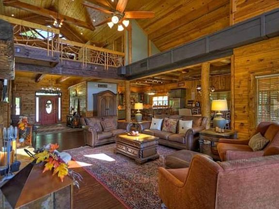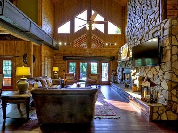 Quality Craftsman Charm meets Traditional Elegance with Rustic Flair...this 4 bedroom/3.5 bath home + large loft is nestled on gentle oversize wooded tract in quaint creek community with ultimate privacy... interior boasts open & well appointed layout featuring massive woodburning fireplaces in large family room, chefs kitchen with upscale appliances & painted cabinetry, large pantry & spacious dining room, large laundry/mudroom, massive master suite complete with ensuite bathtile shower & jetted tub, his/hers walk in closets & private patio overlooking mountain views, welcoming foyer & spacious upstairs features three bedrooms + sitting area, exposed post & beams, surplus storage, sprawling screened patio with outdoor fireplace, cozy wood/drywall interior with unique accents, sky high ceilings, fenced in yard is perfect for pets & children, oversized attached garage with workshop is perfect for covered parking plus outdoor toys, lush & level landscaped yard area surrounded by towering hardwoods and layered mountains with plentiful parking...perfect for entertaining, interior & exterior boasts finishes & a style that speaks for itself....all of this is tucked away, yet just minutes from historic downtown Blue Ridge, Lake BR, the Toccoa River and morenearly all paved accessthis one wont disappoint!