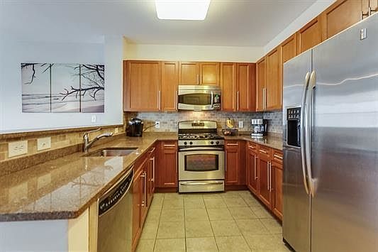 TOP FLOOR 2BR CONDO IN A FULLY AMENITIZED COMPLEX. Experience luxury living in this exquisite two bedroom, two bath condo in the sought after neighborhood of Port Liberte. This modern home is adorned in high-end finishes satisfying everyday needs with: stainless steel appliances, granite countertops, large bay windows, gleaming hardwood flooring throughout 1230sqft, complete master suite with a spa-like bathroom that has a large stand up glass shower and double vanity sinks, spacious guest bedroom, ample closets for storage, in unit washer/dryer, private balcony and dedicated garage parking included. All this an elevator building, with a state-of-the-art gym, two pools, basketball court, tennis court, children’s playground, shuttle to/from Grove Street PATH, easy walk to the ferry to NYC and 24hr gated community.