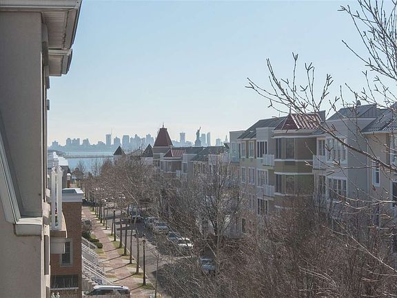Port Liberte luxury condo Phase 3 in Jersey City. South facing top floor filled with sunlight. Top floor with Statue of liberty view from the balcony. The unit features one bed & full bath, Spotless kitchen with cherry wood cabinets. Stainless steel appliances, granite countertops. washer and dryer in unit. Port Liberte offers 24 hour gatehouse security, fitness center, two outdoor pools, tennis courts, basketball court, fenced dog run, outdoor play area, and waterfront promenades. Easy NYC commute via onsite high-speed ferry or Monday thru Saturday shuttle to Grove St PATH train station. Must see !!