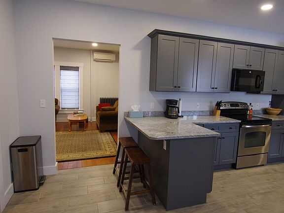 Fully Furnished! All utilities included (Heat, AC, Electric, Water/Sewer, Internet/WiFi). Recently renovated with hardwood floors, granite countertops, high ceilings, washer/dryer, garage, small office space... Quiet neighborhood. Walking distance to downtown shops and restaurants. The space is the entire lower level of the duplex house, with private entrance. Full kitchen with everything needed - cookware, dishes, silverware, etc Parking off street for one car. No Pets, No Smoking. Short to Mid term lease - looking for renter for March through May 2025 - with some flexibility. Rent discount may be available for doing basic lawncare. References and good credit score required. 2 - 3 month fixed term lease. All utilities are included. Tenant responsible for bringing trash to local recycle center. No Pets, No Smoking. Tenant must check water level in boiler (very simple procedure) 1x every 2 weeks. Property is available from March 2025 through the end of May. Some extension or flexibility is possible as negotiated. Rent discount may be available for basic lawncare.