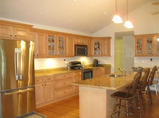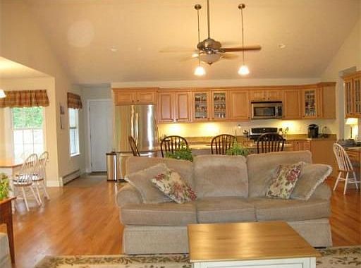 Exceptional quality built contemporary ranch, with terrific floor plan. Maple cabinets, @ granite counters and spacious center island. Stainless steel appliances @ hardwood flooring in kitchen, dining room and great room. Built with approved energy star rating for low utility costs. Central air, weather sensitive irrigation, tiled baths and foyer, plus Minnetonka remote gas fire placed living room. Large deck off living room and master bedroom overlooks conservation land. Finished dry basement.