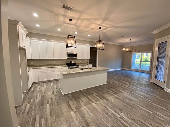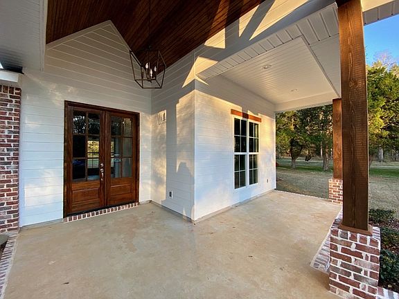 One of a kind AND SPACIOUS!!! GORGEOUS 4 bed 2 bath home with tons of porches on approximately 3 gorgeous acres and stocked pond!!!! Also has large shed. Great open floor plan with spacious living area and large master with walk-in closet and shower. Custom cabinets, trey ceiling, granite counters, stainless appliances, and much more! ALL BRAND NEW!!! Quiet area within minutes of schools and stores, etc. These are not actual photos of home being sold. Current photos are of home with same floor plan. Colors/materials may vary. Priced to sell! Member of selling entity is licensed Ms/la agent.