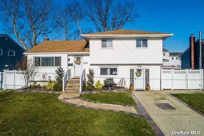 Preapproval and Covid Disc. Required to see this Beautiful Updated 2,501 SF 4-5 BR Split Level Home W/2 Sep Entrances. Custom Stone Stairway Leads To Foyer & EIK w/Cathedral Ceilings & Skylight. Huge 8.5 Ft Granite Counters,Backsplash & Island. Stainless Apps & Oak Hardwd Flrs. Formal LR & DR w/French Doors Leading To Bi-Level 42 Ft Deck. 3 BRs. MBR Has A WIC, Custom In-Wall TV w/Spaces For more Equipment. Large Renov Bath W/ Jetted Tub. 2nd Entrance leads to Ground Level w/Huge Den, High End Tile Flooring W/wood look, 4th BR, Renov Bath w/Jetted Tub & Access To Lower Deck/Backyd. Spacious Bsmt. w/Closets surrounding perimeter & Rear Rm can Be Used As A 5th BR/Office. Gorgeous Backyd Is Great For Entertaining. Fully Equipped W/Multiple Outlets, Landscaping Lights & Plunge Pool w/Cascading Waterfall. Paved 45 Ft Of Side Yrd has space for 3 Cars w/1 Under Covered Pergola. Det 24 Ft Long Changing Rm Currently Used As 2nd Office. Near Nautical Mile, LIRR, JFK, Beaches, Shopping & Schools.