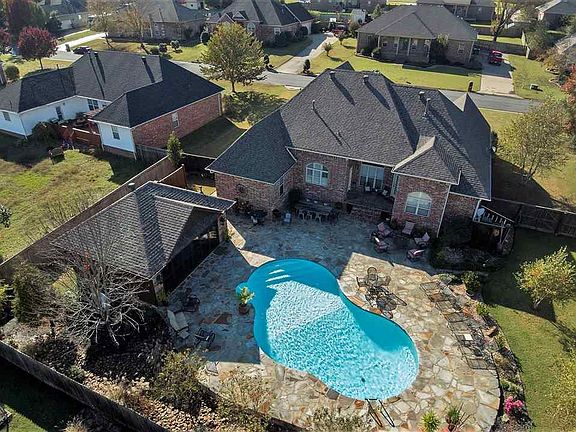 Stunning home is Shiloh with a heated salt water pool and 480SF pool house. The pool house has a wall of glass that will completely open. It has a full bath and full kitchen with Viking gas range and Viking Vent. Granite tops, icemaker, fridge, tile flooring with wood look. You will love this backyard!!! And the house is super as well. 4 BR/ 2.5 BA split plan with all the bells and whistles. Roof replaced in 2016. AC new in 2017. New pool pump in 2017 with salt water converter. CHECK OUT MATTERPORT TOUR!!!