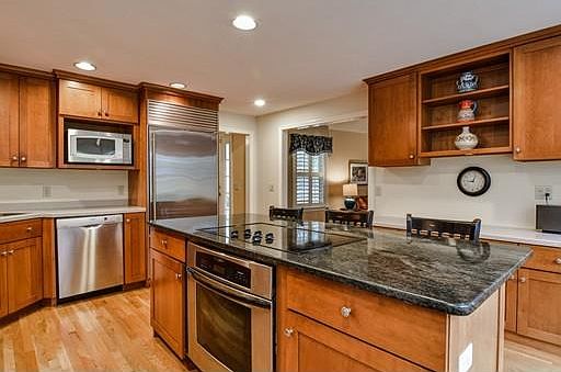 - Kit Dscrp: Flooring - Hardwood, Countertops - Stone/Granite/Solid, Kitchen Island, Stainless Steel Appliances, Window(s) - Bay/Bow/Box