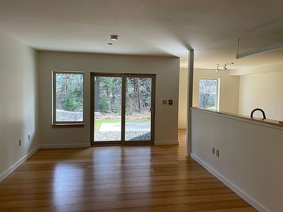 To learn more or view this home, please contact the owner directly at 603-381-8457 by text or voicemail. This modern, two bedroom, two bath corner-unit condominium in Gile Hill is conveniently located adjacent to Dartmouth Health (Dartmouth-Hitchcock Medical Center) and less than two miles from the Dartmouth College campus. A bus stop for the Advance Transit shuttle with free service to the Medical Center, Dartmouth College campus, and shopping areas, is within 10 minutes' walking distance. The condo is an open-plan, airy terrace unit located in a peaceful, natural, and private setting. Sliding glass doors open to a backyard patio. Hardwood floors throughout the main living space, tile floors in the bathrooms, slate floor in the kitchen and entry way. Black granite counters and stainless steel appliances in the kitchen. The main bedroom offers an en suite bathroom and walk-in closet. A second bedroom has its own bathroom directly across the hallway. This is a heat efficient, "green" building with propane-delivered radiant floor heat. An energy-efficient heat pump provides heat during the shoulder seasons and offers AC in the summer. Square footage is approximate. The property includes two parking places and an outdoor storage unit.