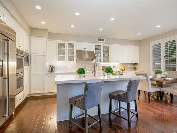 This stunning, three bedroom, two and a half bath resort-style home is located in the coveted gated community of Montserrat, in prestigious Newport Coast. These rare end unit cul-de-sac homes do not come up often. The large open floor plan has a wall of windows off the dining room which brings in an abundance of natural light. The kitchen was newly remodeled on July of 2017 with all new Monogram appliances, 5 burner stove, beautiful quartz counter tops, built-in refrigerator, double ovens, new cabinets and soft gray subway style backsplash. This home also has new Anderson distressed real hardwood floors complimented with high baseboards throughout the first floor. The bedrooms are all located upstairs, and there is a Loft/Den/Office outside the Master Bedroom that could be converted to a fourth bedroom, if desired. The Montserrat community has a pool and recreation area that includes a spa and barbecue area. You can also enjoy the hiking trails, parks, basketball, tennis courts, golf and much more in the highly sought after Newport Coast community.
