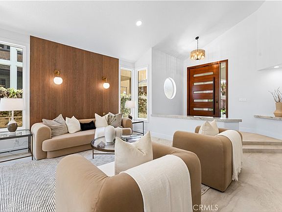 PRICE IMPROVEMENT! Completely renovated, STUNNING 4 bedroom, 4 bathroom home in beautiful Laguna Niguel. Every inch of this residence has been thoughtfully renovated with high-end materials and finishes. A striking custom pivot front door welcomes you into a bright, airy living room featuring high ceilings and a dramatic floor-to-ceiling porcelain fireplace wall. Porcelain flooring compliments the open and cohesive flow throughout the first floor. Dining room with custom, bi-fold doors seamlessly merge interior to the outdoors. The kitchen is beautiful and functional with Taj Mahal quartzite counters (honed finish), semi-custom oak cabinetry, pull-out drawers, including spice rack and lazy susan, enhanced by designer lighting and premium Thermador and Viking appliances, including a six-burner stove with a convenient pot filler. The peninsula offers additional seating and opens to a spacious family room with French doors leading to the backyard oasis. Ideal for guests or multi-generational living, a downstairs bedroom is complimented by a first-floor bathroom featuring a walk-in shower, quartz vanity and bidet. New, custom railing leads to the upstairs retreat where all 3 bedrooms boast en suite bathrooms. The luxurious primary suite offers a private deck and a spa-like bathroom complete with a freestanding porcelain tub, a walk-in shower, a double vanity, and a custom walk-in closet. An oversized secondary bedroom includes its en suite bathroom with walk-in shower, dual vanity and walk-in closet. The 3rd en suite bathroom suite features a 60”, Carrara marble dual vanity with soft close side drawers and 2, USB ports. The backyard is a tranquil paradise with a soothing fountain, cozy fire feature, new pavers, perfect for relaxing or entertaining. Laundry room has new, front load washer/dryer, sink and faucet. Finished garage with epoxy flooring, EV charging outlet, new, fire resistant, garage door, new cabinetry and Taj Mahal, quartzite work counter. Other notable features include: PEX piping, New, 5 ton HVAC system, New water heater, New, high efficiency vinyl windows with custom casings, Bidet toilets in all bathrooms, New bedroom doors, frames, locks and hinges, 5” baseboards throughout, New landscaping AND MUCH MORE! Great location… close to shopping, schools, beaches, scenic trails and Dana Point Harbor. This spectacular home offers the ultimate Southern California lifestyle. Don’t miss your opportunity to own this contemporary, coastal retreat.