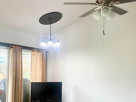 - Beamed Ceilings, Ceiling Fan(s), Chandelier, Eat-in Kitchen, High Ceilings, Natural Woodwork, Recessed Lighting, Vaulted Ceiling(s)