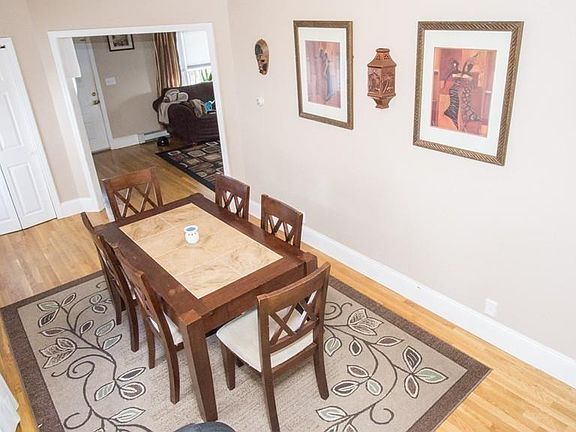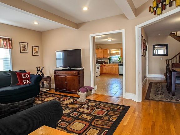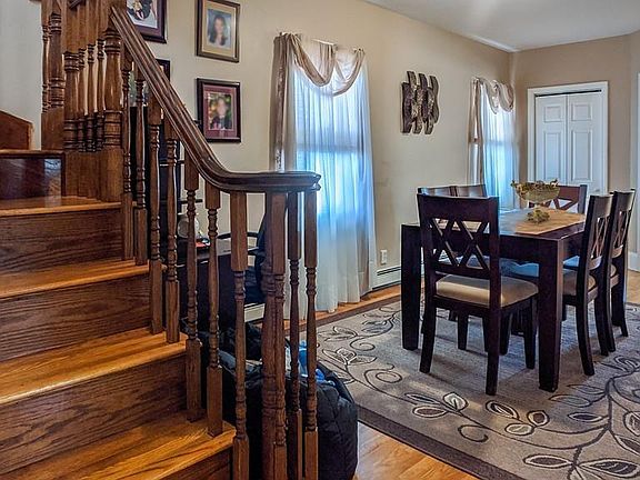 Deceiving from the outside and bigger than it appears! You'll be amazed the moment you step through the front door. A welcoming open floor plan awaits! The spacious living room and formal dining room have gleaming hardwood floors & tall ceilings, adding to the open and airy feel. The large eat-in kitchen has ample cabinets and beautiful granite countertops. All kitchen appliances are included. A half bath rounds out the first level. The second floor consists of a full tiled bath and three to four bedrooms with hardwood flooring. The master has recessed lighting and a walk-in closet. Upgrades include circuit breakers, replacement windows, and glass block basement windows, a new water tank and a fenced yard. There is a detached garage and parking for several cars. Located close to downtown New Bedford. This home is a must-see! Move-in ready.