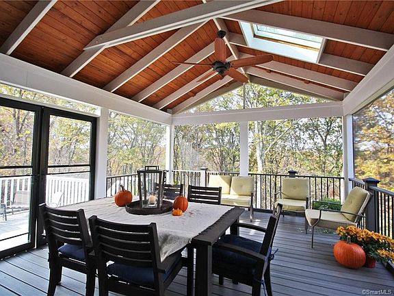 Traditional meets Contemporary in this Immaculate Center Hall Colonial with a Stunning Open Floor Plan and Modern Flair! Enjoy 180 degree views of nature on your newly finished three-season porch with vaulted ceiling, skylights, composite flooring, ambient lighting and surround sound. Entertain in style in the updated kitchen that opens to a spacious family room. The main level also offers ample space with its formal dining room, office/playroom, laundry room and a fourth bedroom that could serve as a perfect in-law or aupair suite with walk-in closet and bath. Upstairs offers a grand master suite with vaulted ceiling, walk in closet and full bath, plus two other spacious bedrooms, storage room and room for future expansion over the garage. Tons more space in the partially finished lower level with a mud room featuring custom built-in storage, a cozy den that walks out to the back yard, workshop and two-car garage. Nothing left to do but enjoy, with newly refinished hardwood floors, trim, doors, hardware and paint throughout. Gracefully landscaped and situated on a quiet cul-de-sac with distant views of Bethel and just two minutes to the quaint town center with its award-winning restaurants and shops.