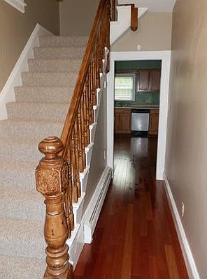 This home has been lovingly cared for by the Seller. All the major items are updated. Done within the past 8 years are New heating system, new windows and doors, new roof, new siding, fully insulated, new carpeting, freshly painted, The home has been de-leaded with documentation in hand, there is off street parking, a very nice back yard, a back deck. Gleaming Hardwood floors, Very nice oak kitchen. There is nothing to do but move in and enjoy. Possibly a third bedroom on the first floor.