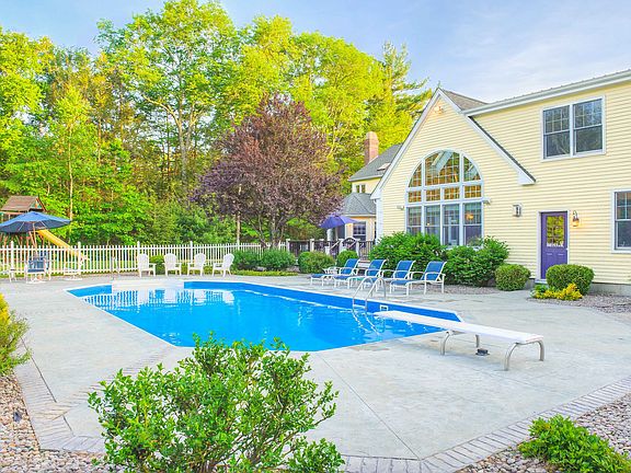 Impeccable custom built colonial with over 4,400 sq ft with attached 3 car garage in one of North Hampton's finest subdivisions. Ideal home for indoor/outdoor entertaining with in-ground pool with solar heating system, new paver patio and expansive Trek deck on 2+ manicured acres. Stunning family room addition with soaring ceilings, wall-to-wall windows, propane fireplace and radiant heat. Eat in kitchen with granite counters, top of line appliances, center island & large pantry. Separate flexible first floor space with full bath & wet bar ideal for in-law/guest space or home offices. Second level boasts a sophisticated Master bedroom with en suite complete with new vanity & tile. Plus, three additional large bedrooms and den, 2 updated baths & laundry area. Fabulous bonus room over the third garage bay plus a partially finished lower level. Central a/c, generator hook-up & full yard irrigation. All of this within minutes to all major commuting routes & beaches.