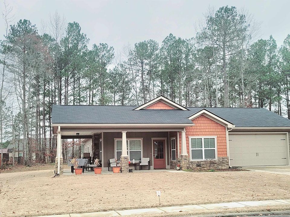 This must see home is ready to be your home! Gorgeous 3BR/2BA Craftsman style beautifully designed home. Very open floor plan, custom kitchen cabinets with Granite countertops. The baths also have granite throughout. Family room with a beautiful fireplace to sit back and enjoy a fire with gas logs. Luxury vinyl flooring and canned lighting. The outside of the home a large front porch that partially wraps around with beautiful siding and stone work. Covered area off the back of the home is great for entertaining. Large 2 car attached garage. This home is conveniently located close to schools, shopping, restaurants.