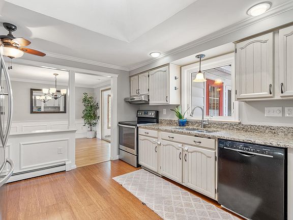 SHOWINGS ARE NOW AVAILABLE AS OF 1/7 - This really lovely raised ranch has recently had many nice updates like roof, windows, water tank…. It's set peacefully within a very popular neighborhood and can now be YOURS! Bedford is known for being one of the highest ranked school districts, most popular communities in NH and considered overall a wonderful place to live by many. Inside you'll find an open feeling main living floor that fills with natural sunlight. The kitchen has plenty of cabinet space and counter top prep space along with a skylight! It flows nicely into the dining area with delicate decorative wall treatment. The oversized living room is complete with a fireplace, wood beams and a bay window. The great room with vaulted wood adorned ceiling and beautiful floors looks out over the private yard, this is the perfect spot for movie night, game night or just lounging peacefully watching the New England foliage change. Your primary bedroom has its own bath with shower! Large finished lower level family room space with fireplace complete with wet bar, mini fridge & half bath provides an awesome bonus space. All of this PLUS a 2 car garage! This pretty home is value packed from top to bottom. Here you'll love being in a fabulous neighborhood but still feeling like you have the shopping, restaurants, recreation and amenities you need close by. Located just 8 miles to Manchester, 23 miles to Concord, 26 miles to Salem, 30 miles to Lowell and only 55 miles to Boston.