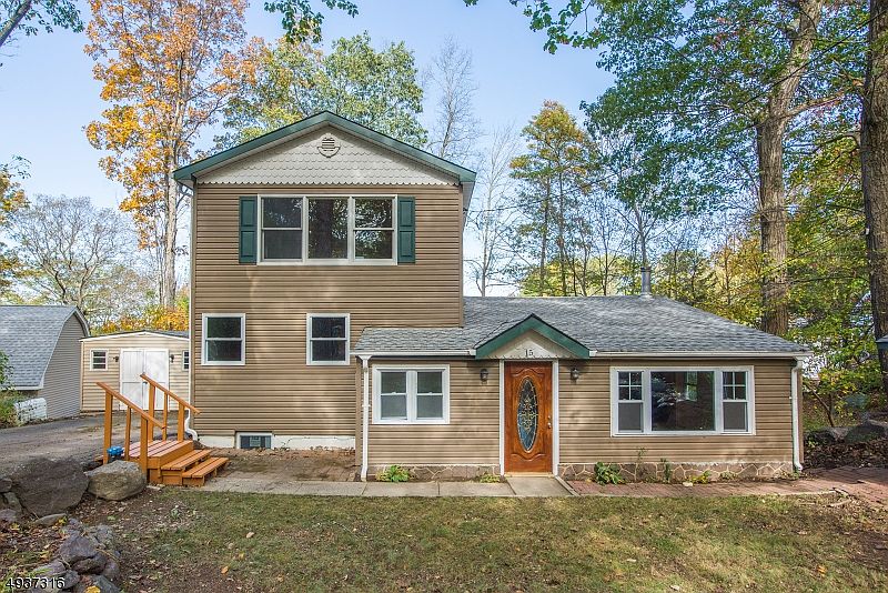 Completely renovated Colonial, on quiet street in Upper Greenwood Lake! First floor includes a large foyer, living room w/ wood burning stove, dining room, all with new flooring, and brand new kitchen w/ stainless steel appliances, granite, and backsplash. Second floor features two good size bedrooms with hardwood floors, & gorgeous new bathroom with tub shower. Large master bedroom w/skylight is on the 3rd floor. Other features include large unfinished basement, new windows, great size yard with deck, new hot water heater, newly sided deck, and lake privileges!