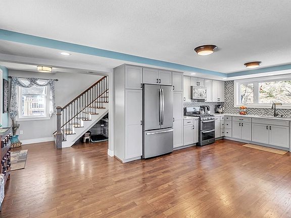 - Features: Flooring - Laminate, Window(s) - Bay/Bow/Box, Window(s) - Picture, Countertops - Stone/Granite/Solid, Countertops - Upgraded, Kitchen Island, Cabinets - Upgraded, Exterior Access, Open Floorplan, Recessed Lighting, Remodeled, Stainless Steel Appliances, Gas Stove, Peninsula