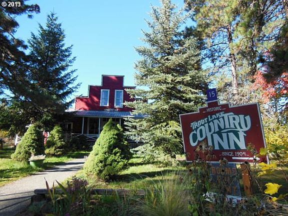UP AND RUNNING BUSINESS! Long history w Country Inn (Trout Lake Tavern). It has been a gathering place since 1904. The building is like stepping back in time. Great food & great fun. Fully functional kitchen., permitted & ready to keep on running. Large dining area for eating, gatherings. Full stage for band or plays. 5 sleeping rms for a B&B 4 bathrooms.. Fabulous view of Mt Adams &close to Trout Creek. www.troutlakecountryinn.net/