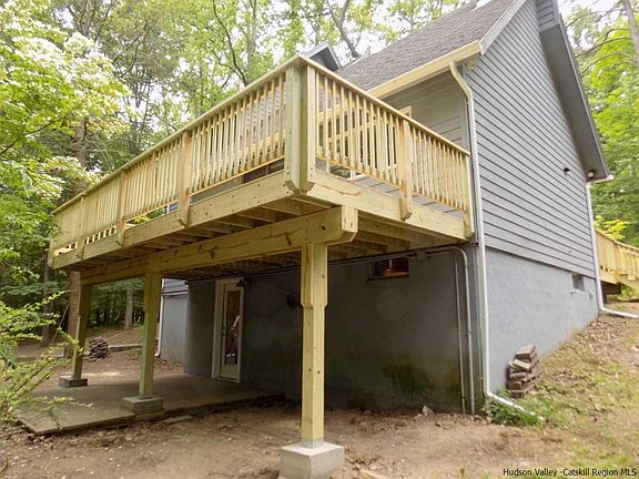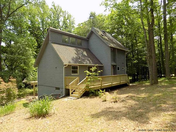 This Gardiner 3 bedroom, 3 bath contemporary home is nicely sited amongst the trees below the Shawangunk cliffs on a dead end road with underground utilities and only a 10 minute bike ride from Minnewaska and Mohonk access. The modernist home features a fab kitchen with dark stainless appliances, sleek cabinetry and quartz countertop, a main level master suite with new bath, a great room with soaring vaulted ceilings, a Japanese style meditation room on the second floor and finished space on the lower level. There are new decks on both the front and rear of the house to take in the beautiful surroundings. And don't forget the wonderful 36' x 23' studio building with polished concrete floors, radiant heating, high ceilings, full bath and double sliders to a private deck. So much value here for the price and very easy to show.