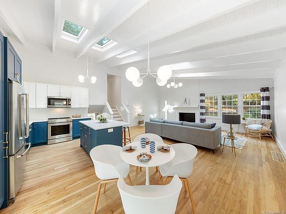 Renovated 3-bedroom midcentury home in a great Westport location! Updated: kitchen, bathrooms, hardwood flooring, AC, water heater, generator and septic system. Open plan kitchen/living space with vaulted ceiling and skylights. Stainless steel appliances with center island is framed by chic blue cabinets. Additional living space includes a bright playroom/family room with dry bar and a home office with picture window, which could also serve as a sleeping area with an updated full bathroom with shower. Upstairs, 3 bedrooms are served by another updated bathroom. Outdoor space includes a screened porch for summer nights, sliders leading to a deck overlooking the 1-acre property and room to walk and bike on a flat, 1/2 mile cul de sac. One car garage, separate laundry room, pull-down attic and whole-house generator complete the home. Convenient location: walk to Wakeman Town Farm for your weekend veggies and then on to the playing fields to kick around the ball or stretch your legs. Grab a latte and a scone on your way home at Gruel Brittania once they open at the Christie's location. Close to the award-winning Staples High School. Landlord covers landscaping. Pets considered. Excellent credit a must, application through RentSpree. Showings start June 9th.
