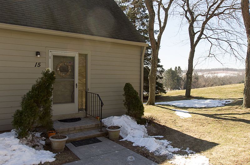 Picturesque location!! Beautiful end unit, with 2 bedrooms with views, updated baths and kitchen with Corian, garage, Lower level is finished and can be 3rd bed with full bath.