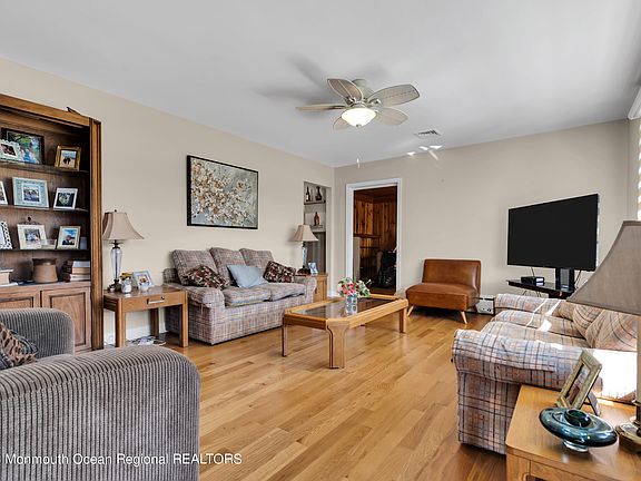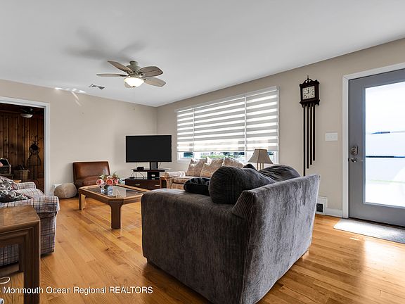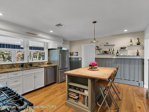 Highly desirable West Long Branch offers this 2 bedroom, 2 bath ranch with open floor plan with lake views and bonus room can be used as 3rd bedroom. This updated home features hardwood floors throughout, spacious living room, formal dining room, updated kitchen with center island, granite tops, stainless steel appliances, newer cabinets, and recessed lighting. Oversized bedroom offer plenty of closet space. Both bathrooms are updated with new vanities, modern tile, and frameless glass shower doors. Exterior features large yard, and screened-in 2 seasons room. Great location close to local beaches, shopping, and restaurants.
