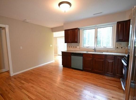 UPDATED CAPE, large eat in kitchen with NEW granite counters,NEW hardwood flrs, and new stainless appliances, large living room with stone fireplace,NEW master bedroom with private bath and walk in closets, 2 updated main level bedrooms with wood floors, small romantic dining room with sliders to large level private yard. New driveway. Detached two car garage with large work shop or storage area. New propane heating system,. new roof and new Central Air. Move in condition