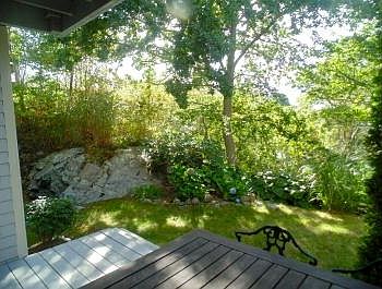 This is a private, bright, 3-floor end unit in a small community of townhouses. Moorland Farm is known for being quiet and off the beaten track, but minutes from all the amenities of Newport. This unit has 3 spacious bedrooms: a master bedroom (with deck, en suite full bath and queen size bed) and a twin bedroom (with two twin beds and en suite full bath). The third floor is a triple bedroom (with 3 twins and skylights). This floor makes an excellent children's area or quiet den/office. The first floor has a dining area with deck, living area with a gas fireplace, full eat in kitchen with additional bar seating and half bath. There is a spacious one car garage and additional parking available in front of the unit. Lots of closets and storage throughout the house. Washer and Dryer in unit. Newly refinished hardwood floors and a neutral decor. Brand new heating/cooling system. Updated kitchen and baths; new energy efficient appliances. Small grass area to the rear. All landscaping, leaf and snow removal included in the rent. Includes: pool, tennis court, gas grill. 2200/Winter