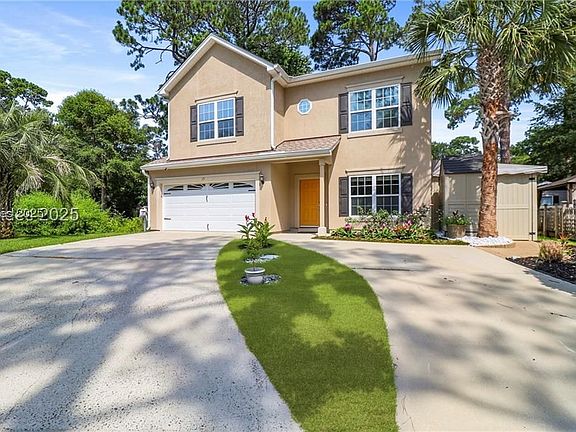 Located on a quiet cul-de-sac with No HOA fees, this immaculate 4BD/2.5BA home with a 2 car garage, covered patio, and fenced yard is ready for a new owner to enjoy at a great price point on Hilton Head Island! The great room flows into the dining area & kitchen which is enhanced with new SS appliances, quartz counters, & pantry for extra storage. Four bedrooms on the 2nd floor allow space for family, guest & hobbies/office. The owner has taken the worry out of home ownership with updates to the interior trim, flooring, kitchen, baths, newer insulated garage door & epoxy floors, gutters and an immaculately maintained home with ample parking!