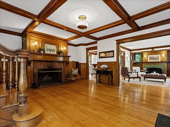 In a top Newton Centre village location close to Crystal Lake & Mason-Rice, this beautiful updated Victorian merges gorgeous original detail with a renovated kitchen and bathrooms. The huge foyer has a beamed ceiling & fireplace and opens to the family room and oversized living room with another fireplace. Open to the living room is the large dining room with a beamed ceiling, a sun-drenched sitting room and a butler's pantry leading to the kitchen which has granite counters, stainless appliances and a door to the deck & yard. The kitchen is open to a large breakfast room. A lovely study, powder room & mudroom complete this level. On the 2nd floor is the primary suite including a bedroom with a fireplace, a renovated full bath & covered screened porch, plus 3 more bedrooms, 2 more renovated full bathrooms & laundry. The 3rd floor has an amazing suite of rooms with another renovated bathroom, perfect as guest space. Less recently finished, the lower level includes an older full bath.