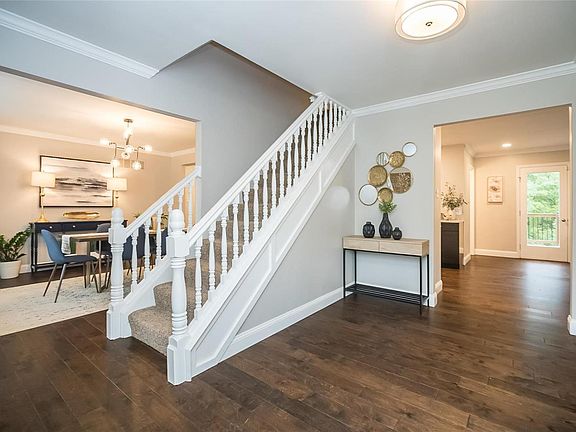 You'll love this stately 4BD home with three levels of finished living space. The main floor features an open layout with luxury engineered hardwood flooring throughout, entry foyer, front formal living and dining, great room with gas fireplace with access to an oversize deck with views of the tranquil private backyard. The updated modern kitchen boast an oversized island with quarts countertops, white shaker cabinets, SS appliances, pantry and a drink bar area with wine fridge. Upstairs offers the primary suite with tray ceilings, sitting area, gas fireplace and spa like bathroom with soaking tub, dual vanities, separate shower and skylight. Three additional good size bedrooms and full hall bathroom round out the 2nd level. The walkout finished lower level comes with a rec area, sleeping room with attached full bathroom and storage. Suited in a friendly community on a cul-de-sac street with easy access to Hwy's.