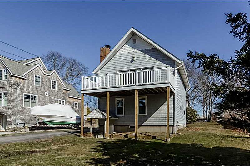 Seasonal water views front & back,from this Island retreat.Bedrooms on 1st flr,2 fireplaces,lovely hardwoods.Cathedral ceilings & decks w/glass sliders allow lots of natural light.Updated windows,roof,siding & decks.Walk to beach.Assoc dock,boat ramp
