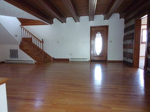 Dreaming of a beautiful log cabin in the woods? This cabin has lovingly been restored and has had several additions. It has bright gleaming wood floors, 4 bedrooms, 2 full and 2 half baths, two Gas log fireplaces, a bright sunroom, 2 car garage, spacious deck, front porch with swing all on a 5-acre wooded lot. From relaxing on the front porch swing to entertaining on the back deck, you're sure to love your new home. Home is being sold "As Is". Seller is offering A $5,000 carpet allowance with acceptable offer. The new price reflects items addressed on the home inspection.