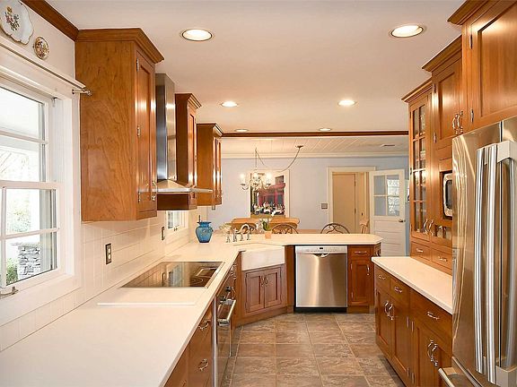 Beautifully expanded ranch with timeless design.Not your cookie cutter home-features high end finishes,architectural details,rich wood floors & windows galore showcasing the 2 acre property.High end designer kitchen.Spectacular expanded family room w vaulted ceilings,exposed beams & fireplace opens to huge dining room w trey ceilings,fireplace & french doors leading outside.Expanded master suite offers trey ceilings,marble bth & French doors.Luxurious bathrooms.Taxes being grieved.Nat gas nearby